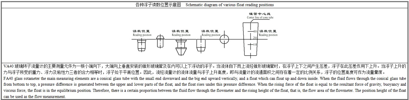 VA40 series glass rotor flowmeter has theadvantages of high sensitivity, Wide measurement range, small pressure loss,The instrument of straight pipe section of the character of not. Commonly usedto measure the pressure, At room temperature, Transparent liquid or gas withoutparticles and suspended matter. Widely used in petroleum, Chemical industry,iron and steel, electronics, environmental protection, power, The industrialfield of medicine etc..